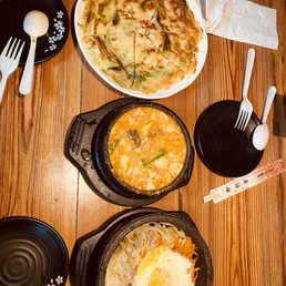Walked by this spot many times & glad I finally dropped in. The restaurant gives off Korean comfort food vibes. The soy garlic wings are absolutely delicious! I actually like them more than bb.q's. The tteokbokki was too watery for my taste & also lacked flavor while just being spicy. The sauce slipped off everything which was a bummer. I'll definitely be back for the chicken wings & to try other dishes. The waitress was also very kind & extremely attentive at refilling our water.